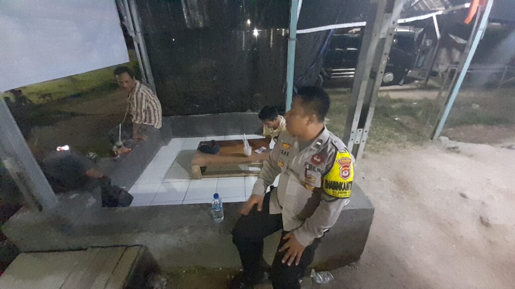 CILEGON- analisnews.co.id Dalam rangka Menjamin situasi kamtibmas kondusif Personil Bhabinkamtibmas Polsek Cibeber Monitoring Rutin wilayah binaanya dengan Menyapa warga yang sedang jaga malam di wilayah Cibeber Kota Cilegon.