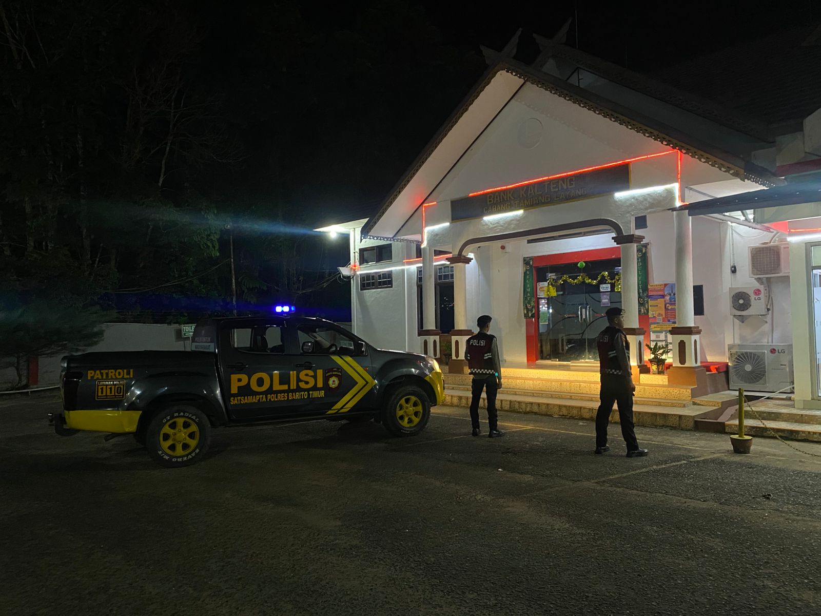 Pada pukul 02.00 WIB, Satsamapta Polres Barito Timur melanjutkan patroli dini hari dengan menyasar fasilitas perbankan Bank Kalteng Cabang Tamiang Layang.