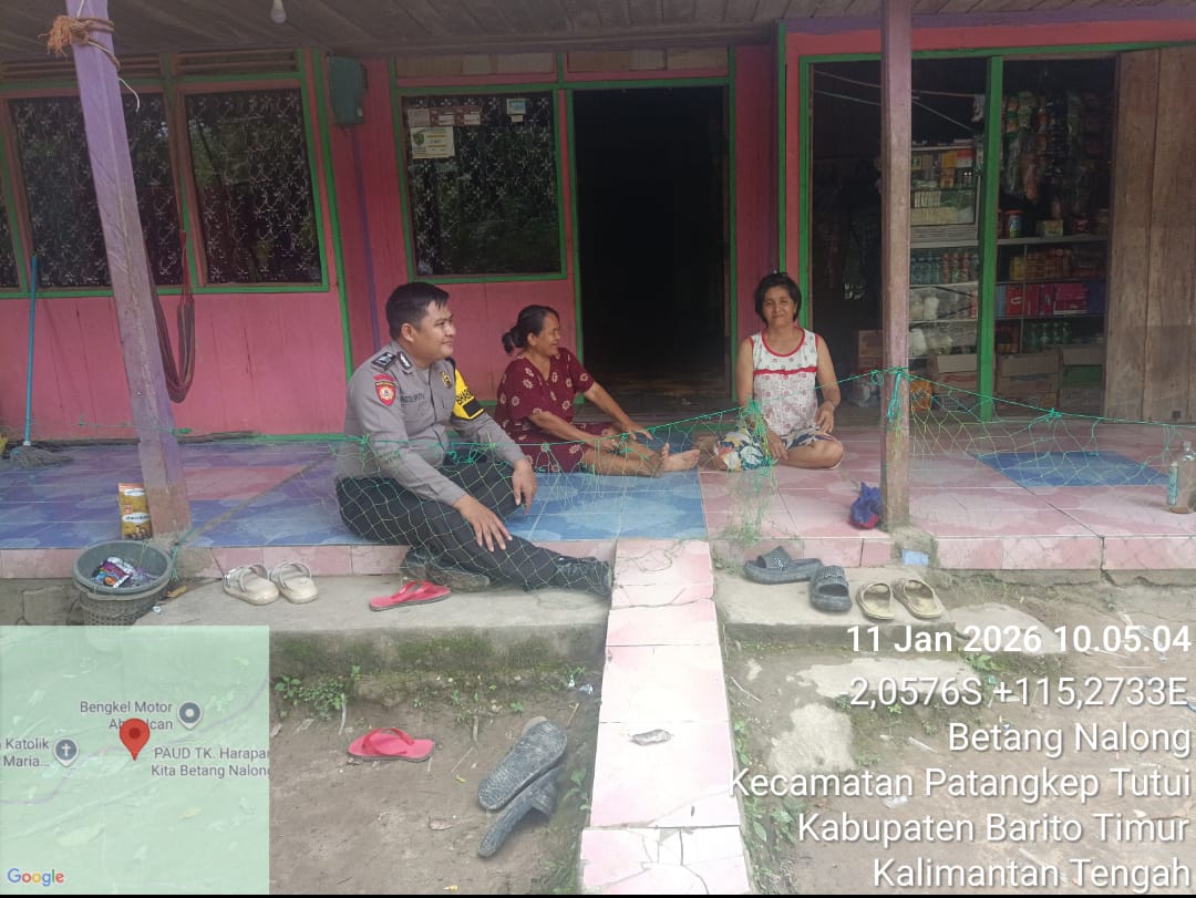 Patangkep Tutui – Dalam rangka memperkuat pemeliharaan keamanan dan ketertiban masyarakat (harkamtibmas), Bhabinkamtibmas Desa Betang Nalong Polsek Patangkep Tutui Polres Barito Timur Polda Kalimantan Tengah melaksanakan kegiatan sambang kamtibmas pada Minggu, 11 Januari 2026. Kegiatan tersebut berlangsung di Desa Betang Nalong, Kecamatan Patangkep Tutui, Kabupaten Barito Timur, Provinsi Kalimantan Tengah.