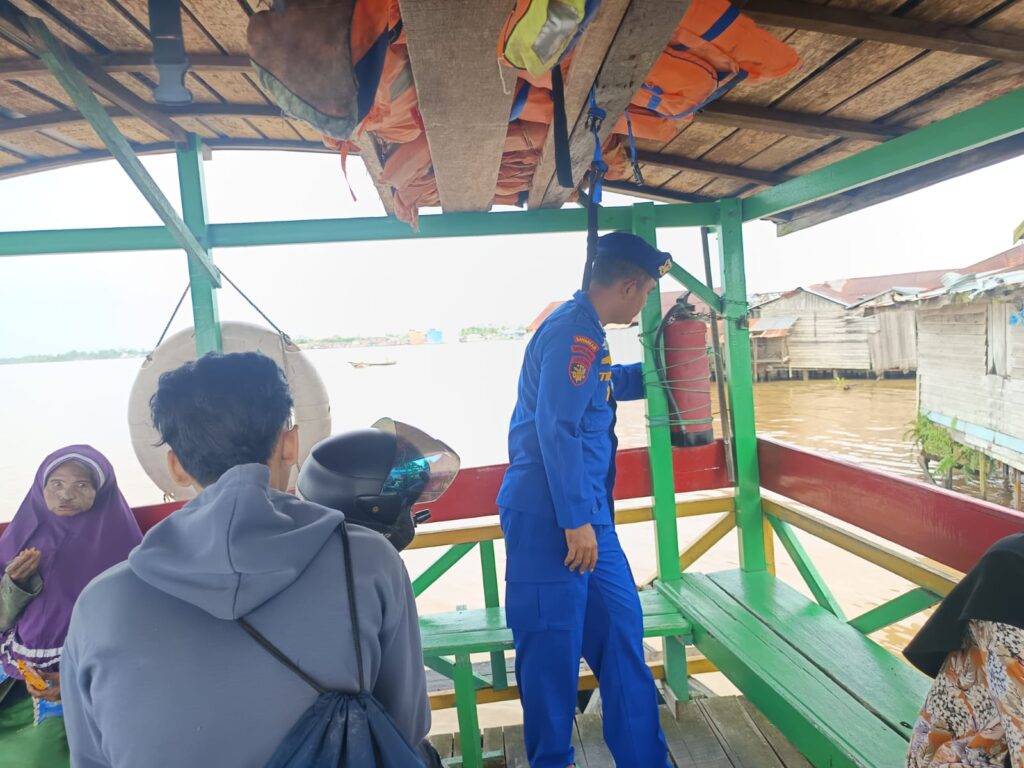 Beranda / TERKINI / Satpolairud Polres Kapuas Cek Kelengkapan Alat Keselamatan kapal yang melintas DAS Kapuas