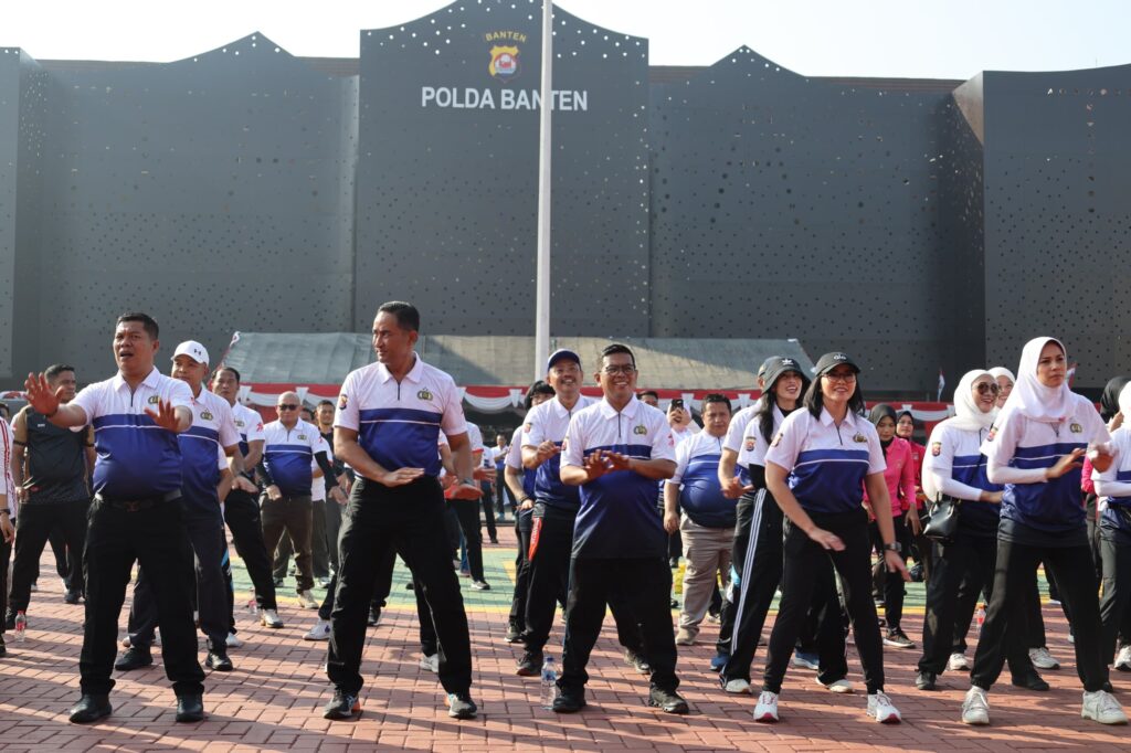 Serang – analisnews.co.id Dalam rangka memperingati Hari Bhayangkara ke-79 Tahun 2025, Polda Banten menggelar kegiatan olahraga bersama yang dilanjut dengan pembagian doorprize. Kegiatan berlangsung meriah di Lapangan Polda Banten, pada Rabu (26/06).