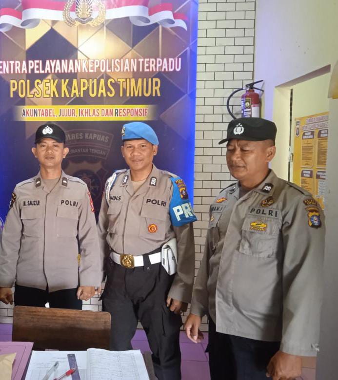 Kapuas Timur-Pelaksanaan serah terima piket dilakukan oleh anggota piket yang bertugas sebelumnya kepada anggota yang baru, dengan pemeriksaan kesiapan personel, kelengkapan sarana dan prasarana serta kondisi keamanan di sekitar mako adapun kegiatan ini dilaksanakan oleh petugas piket lama Polsek Kapuas Timur kepada petugas piket jaga baru Polsek Kapuas Timur, yang memastikan seluruh personel siap menjalankan tugas, Minggu (20/07/2025) pukul 08.00 Wib.
