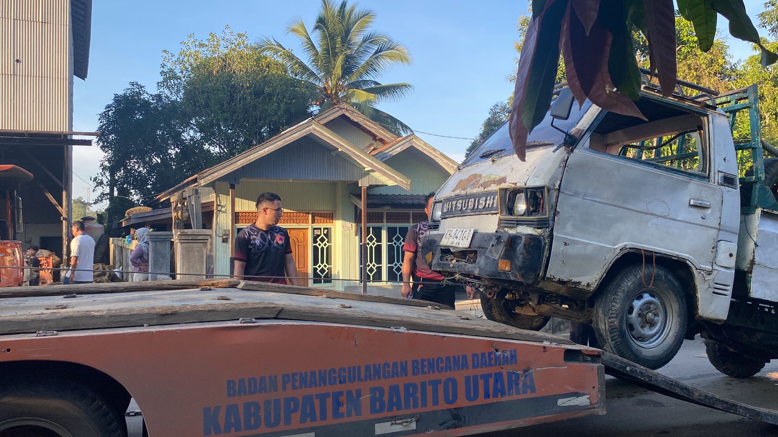 Sekitar pukul 14.30 WIB, tim gabungan mulai melakukan proses evakuasi kendaraan yang tenggelam di dasar sungai dengan kedalaman sekitar 3 meter. Dengan kerja sama yang solid, petugas dan masyarakat mengikat tali towing pada kendaraan di dasar sungai, kemudian secara bersama-sama menarik pick up tersebut hingga berhasil diangkat kembali ke darat.