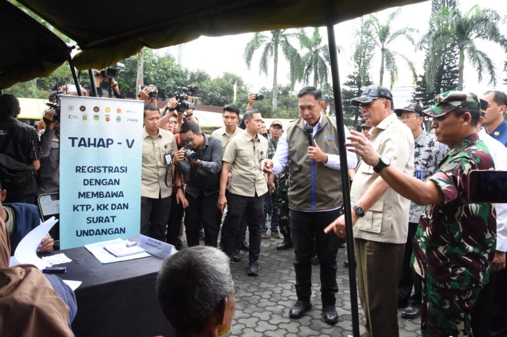 Bandung – Panglima TNI Jenderal TNI Agus Subiyanto bersama Menteri Pertahanan Republik Indonesia Sjafrie Sjamsoeddin menghadiri acara penyaluran bantuan pangan beras sekaligus peluncuran program Stabilisasi Pasokan dan Harga Pangan (SPHP) yang digelar terpusat di Lapangan Makodam III/Siliwangi, Bandung, Jawa Barat, Kamis (24/7/2025).