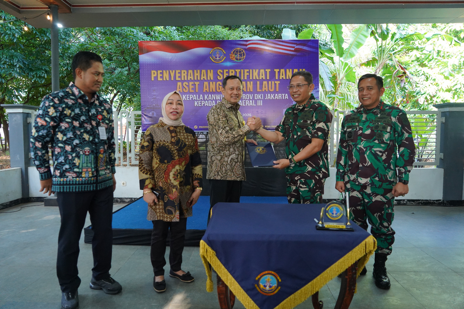 Kegiatan ini diawali dengan penyerahan sertifikat tanah oleh kepala Kakanwil BPN DKI Jakarta, Erry Juliani Pasoreh, S.H., M.Si., M.Kn., dimana sebagai bentuk legalitas aset milik TNI AL yang memiliki peran penting dalam mendukung pelaksanaan tugas dan fungsi pertahanan negara.