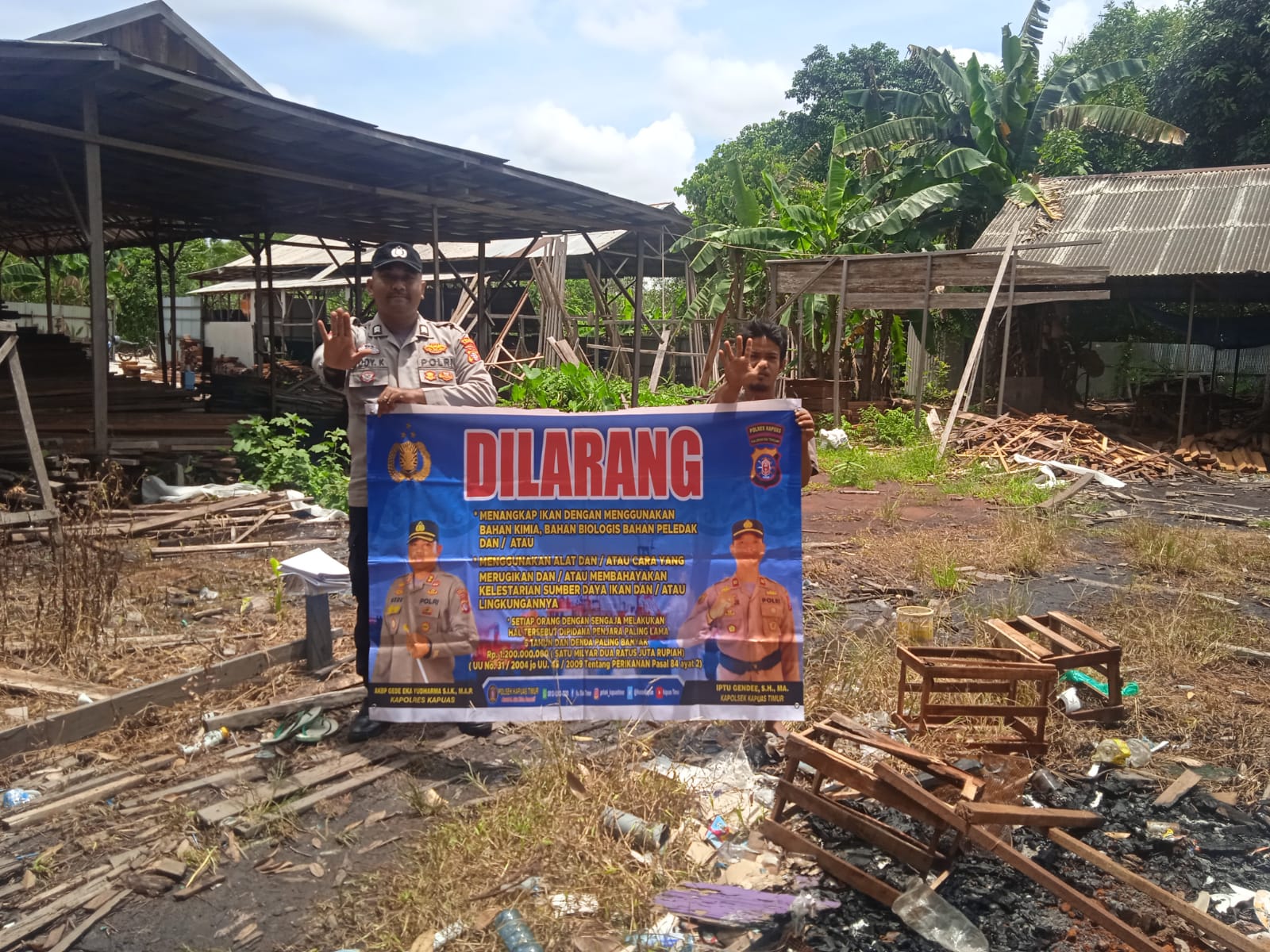 Personel Polsek Kapuas Timur Polres Kapuas Polda Kalteng mengantisipasi maraknya penyetruman ikan di sungai yang ada di Desa Anjir Serapat Barat Kecamatan Kapuas Timur, melaksanakan kegiatan sosialisasi maupun imbauan tentang larangan penangkapan ikan dengan cara menyetrum dan menggunakan bahan berbahaya, Rabu (05/11/2025) pukul 10.00 WIB.