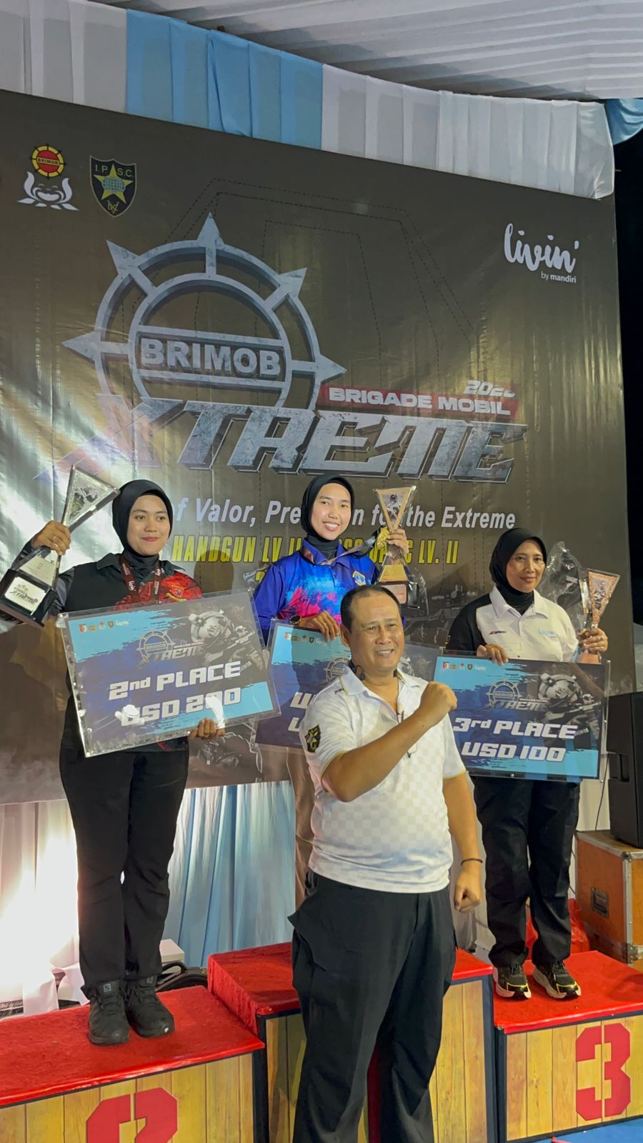 Serka Pom/W Indah Ayu meraih hasil gemilang dalam ajang lomba menembak Kakor Brimob Polri Cup 2026, yang dilaksanakan di lapangan tembak pistol Hoegeng Mako Brimob Polri, Kelapa Dua, Depok.