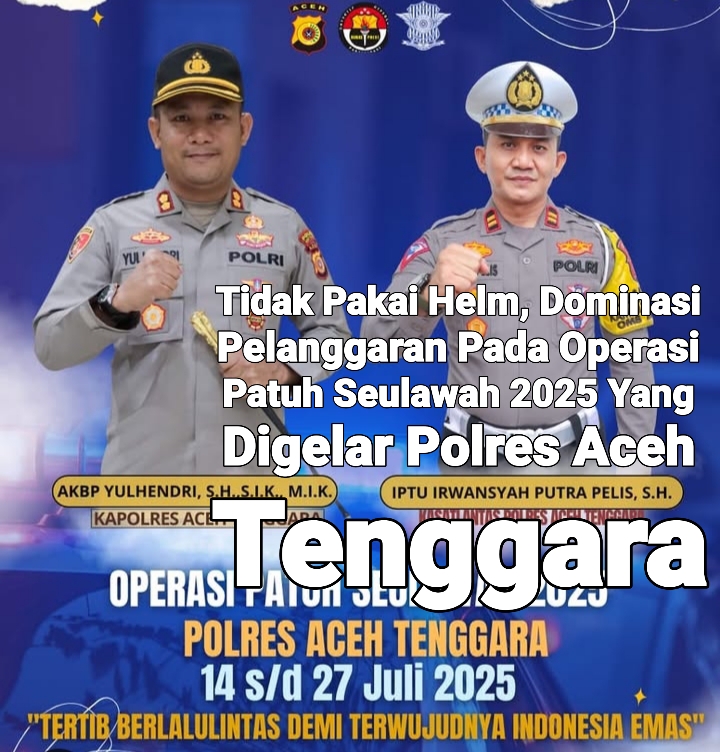 Aceh Tenggara (Analis News) : Kapolres Aceh Tenggara, AKBP Yulhendri, SH, SIK, MIK yang disampaikan melalui Kasat Lantas Polres Agara, Iptu Irwansyah Putra Pelis, SH, mengatakan bahwa jenis pelanggaran yang mendominasi terjaring pada Operasi Patuh Seulawah 2025 adalah kurangnya kesadaran warga memakai helm (pelindung kepala).