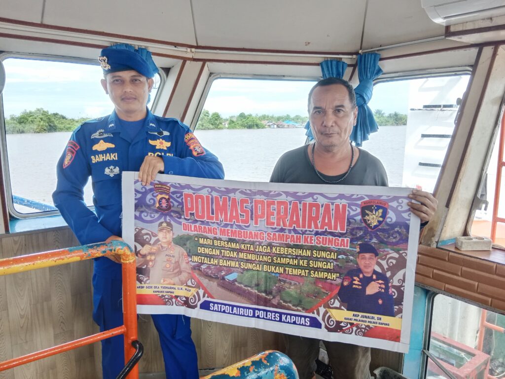 Satpolairud Polres Kapuas jajaran Polda Kalteng imbau masyarakat agar tidak membuang sampah ke sungai kabupaten Kapuas, Kalimantan Tengah, Kamis (26/6/2025) Siang.