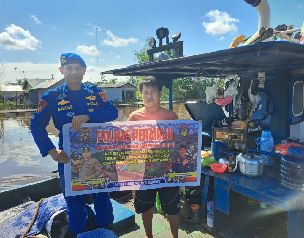 Satpolairud Polres Kapuas jajaran Polda Kalteng imbau masyarakat agar tidak membuang sampah ke sungai kabupaten Kapuas, Kalimantan Tengah, Rabu (2/7/2025) Siang.