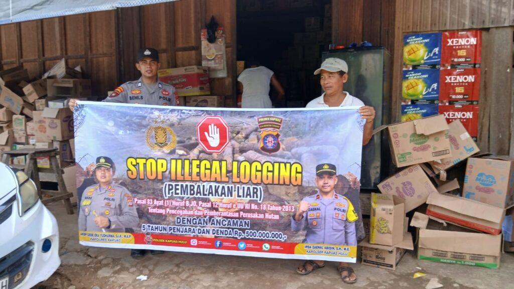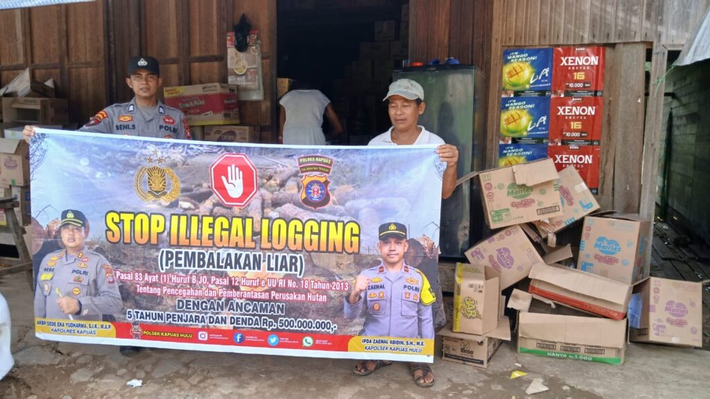 Tribratanews.kalteng.polri.go.id-Kapuas Hulu-Polsek Kapuas Hulu, Polres Kapuas, Polda Kalteng melakukan sosialisasi terkait illegal logging sekaligus bahaya perambahan hutan di wilayah Kecamatan Kapuas Hulu Kab. Kapuas Prov. Kalteng, Senin (16/6/2025) 11.30 WIB.
