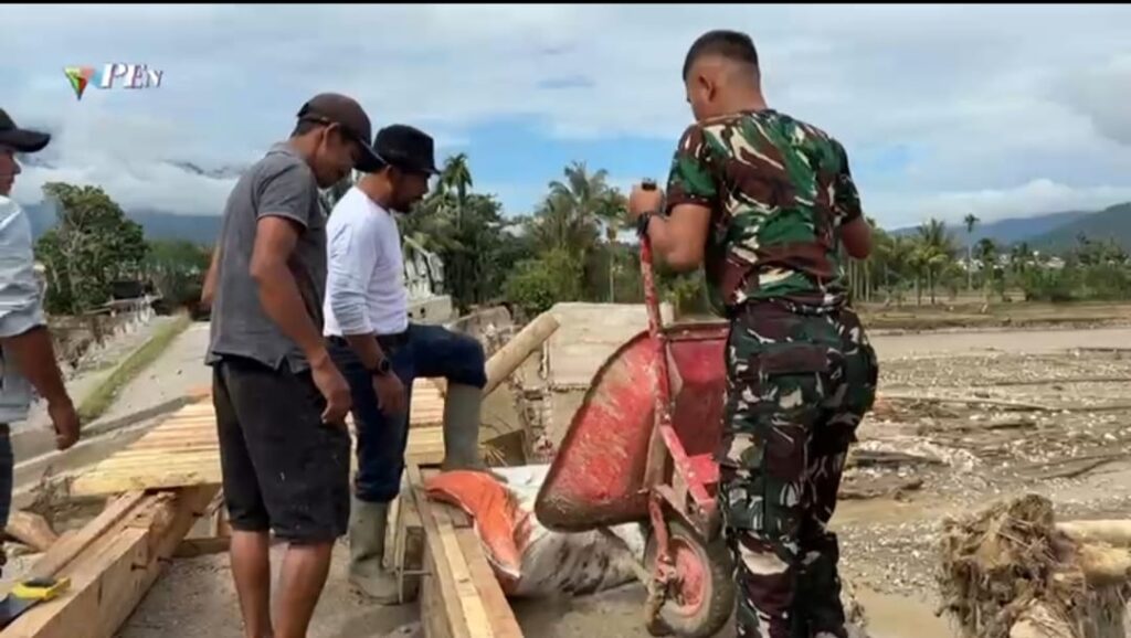 Melihat kondisi tersebut, personel Kodim 0113/Gayo Lues bergerak cepat bersama masyarakat membangun jembatan sementara dengan memanfaatkan material seadanya seperti kayu dan bambu. Dengan semangat gotong royong, jembatan darurat tersebut diupayakan dapat segera difungsikan, khususnya untuk pejalan kaki dan kendaraan ringan, sembari menunggu pembangunan jembatan permanen.