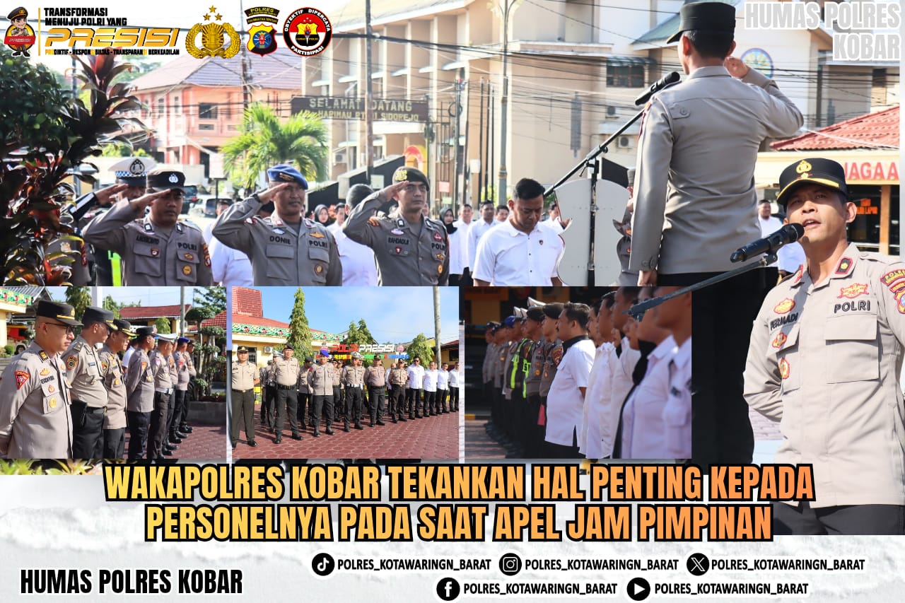 Wakapolres Kobar Kompol Permadi, S.E., S.I.K., pimpin pelaksanaan apel jam Pimpinan pada hari Senin (20/04/2026) pagi.