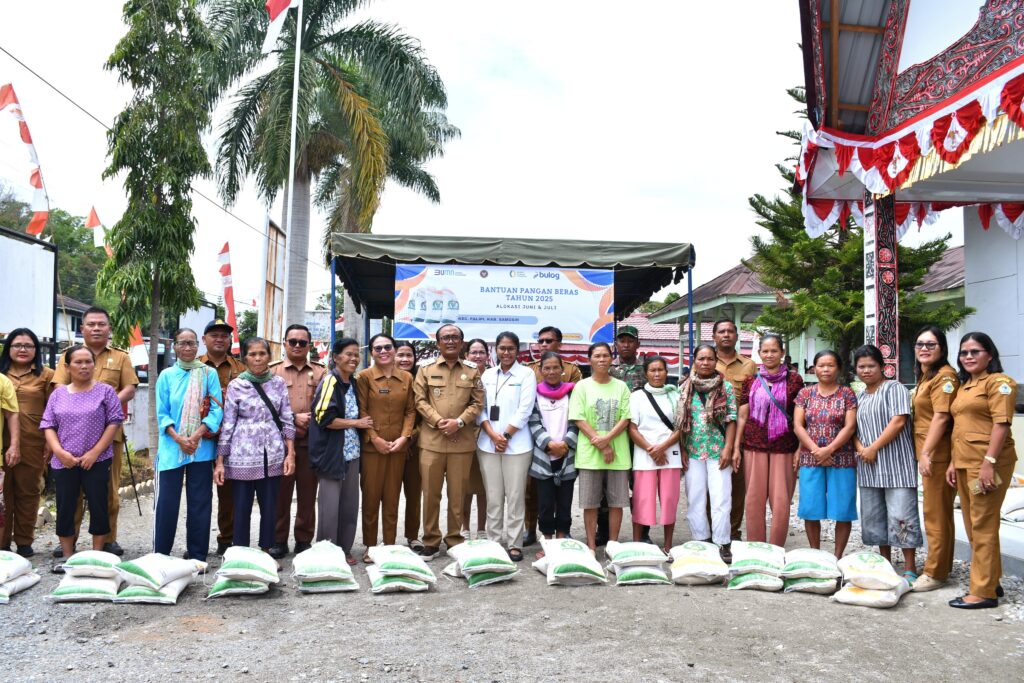 Wakil Bupati Samosir Ariston Tua Sidauruk, SE, MM menyalurkan bantuan pangan berupa beras dari Cadangan Pangan Pemerintah (CPP) Tahun 2025 alokasi bulan Juni dan Juli kepada masyarakat Kecamatan Palipi, yang dilaksanakan di Kantor Camat Palipi, pada Senin (11/8/25).