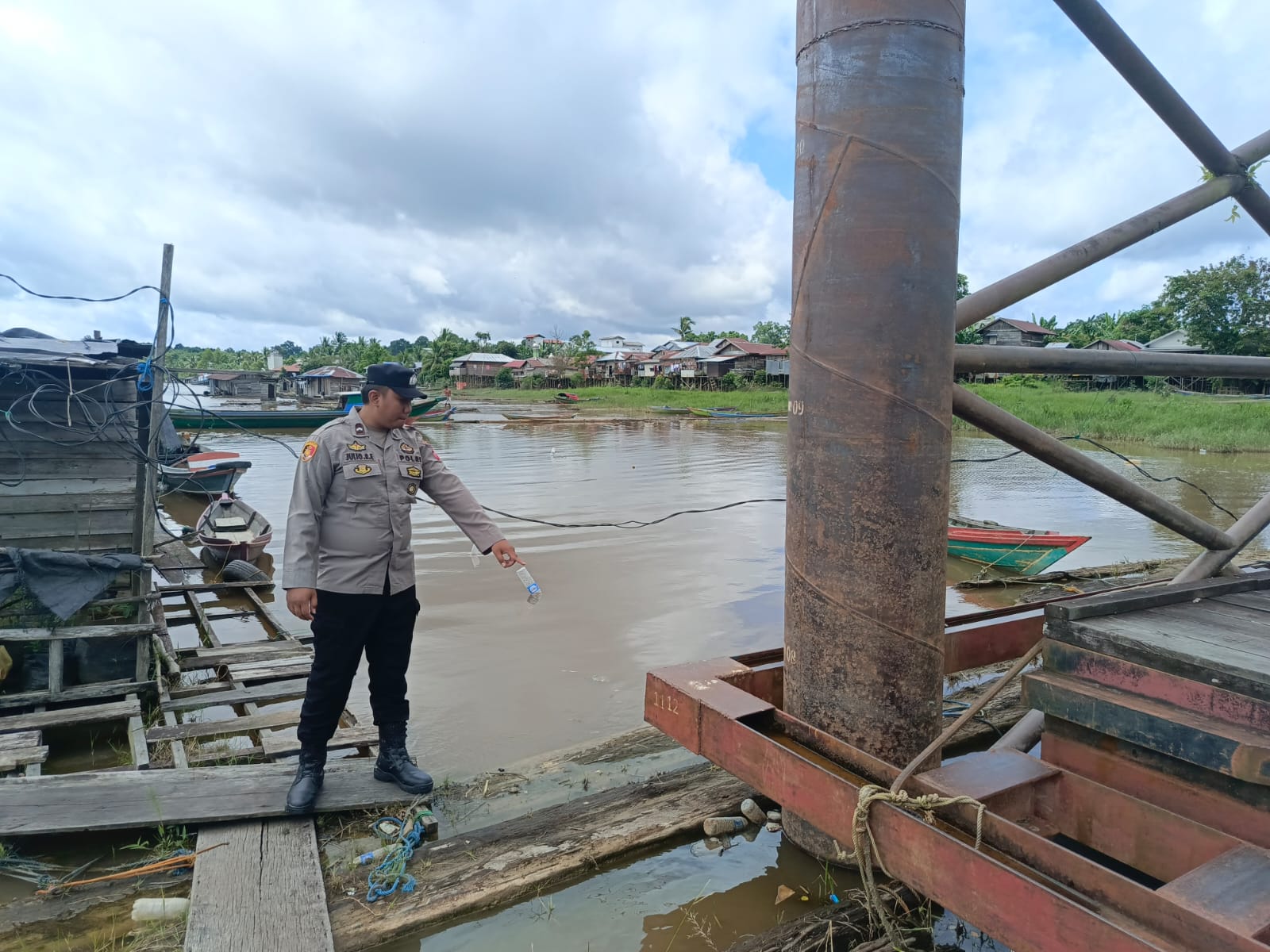 Polres Barsel – Mengantisipasi kenaikan air kiriman dari hulu Sungai Barito, personel Polsek Dusun Selatan (Dusel), Polres Barito Selatan (Barsel), Polda Kalteng, melaksanakan patroli mengecek debit air di bantaran Sungai Barito, Kota Buntok, Minggu (12/4/2026) Pagi.