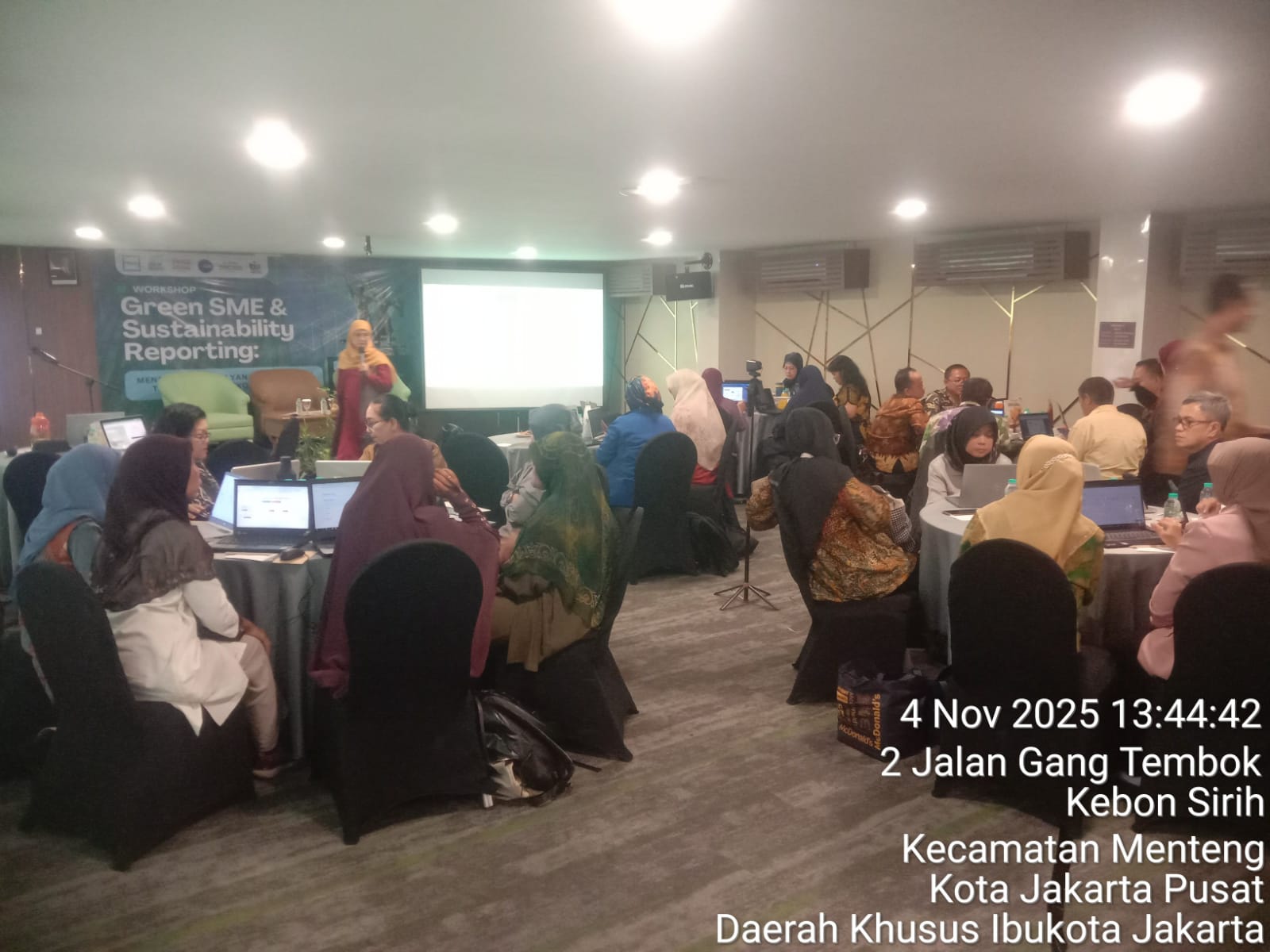 Transformasi ekonomi dunia yang bergerak menuju low-carbon economy menuntut pelaku UMKM untuk menyesuaikan diri dengan prinsip Environmental, Social, and Governance (ESG). Workshop ini hadir sebagai langkah konkret mendukung arah kebijakan nasional, sebagaimana tertuang dalam Renstra Kementerian Koperasi dan UKM 2024–2029, untuk mewujudkan UMKM yang berdaya saing, modern, dan berkelanjutan. Dimana pada workshop ini disertai praktek oleh para peserta bagaimana menggunakan aplikasi Sustainability untuk usahanya masing-masing sehingga membawa dampak positif yang berkelanjutan bagi perbaikan ekonomi dan lingkungan dimendatang. Kegiatan berikutnya akan diadakan dikota Bandung pada tanggal 6 November 2025 dan terakhir kota Kediri pada tanggal 18 November 2025.