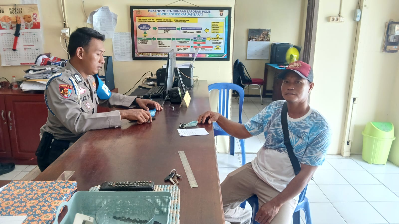 Kapolsek Kapuas Barat, Ipda Siswono Tri Soemantri, S.H., M.M., menegaskan bahwa loket pelayanan Polsek selalu terbuka bagi seluruh warga, termasuk masyarakat dari Desa Pantai yang membutuhkan bantuan hukum maupun administrasi.